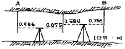 그림과 같이 터널 내 수준측량을 하였을 경우 A점의 표고가 156.632m라면 B점의 표고는?