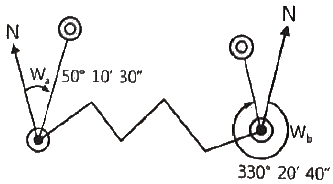 지적도근점측량에서 배각법으로 다음과 같이 관측하였을 때 교차각은?