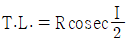 원곡선 중 단곡선을 설치할 때 접선장(T.L.)을 구하는 공식은? (단, R:곡선반지름, I:교각)