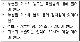 다음 조건에서 도시가스가 누출되었을 경우 폭발할 수 있는 조건으로 모두 맞는 것은?