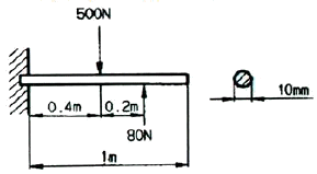 그림과 같은 외팔보에 발생하는 최대 굽힘응력은 약 몇 MPa인가?