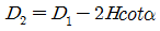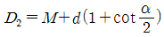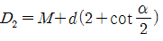 다음 더브테일 그림에서 D2의 치수를 구하는 식으로 옳은 것은?
