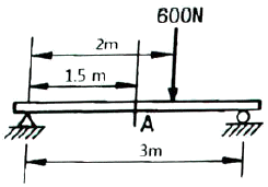 그림에서 중앙점(A)에 작용하는 모멘트는 몇 N·m인가?