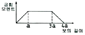 그림은 어떤 단순보에 작용하는 굽힘 모멘트 선도이다. 이 보에 작용하는 하중을 가장 옳게 설명한 것은? (단, 단수보의 총 길이는 4a이다.)