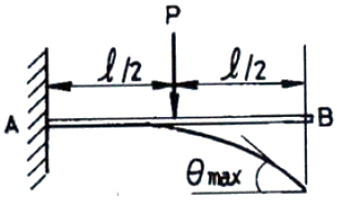 그림과 같은 길이 l의 외팔보의 중앙 l/2의 점에 P의 집중하중이 작용할 때 처짐각(θmax)은 얼마인가? (단, EI는 강성계수이다.)