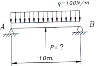 그림과 같이 균일 분포 하중을 받는 단순보의 중앙점에서의 굽힘모멘트가 “0”이 되기 위해서는 몇 N의 힘으로 밀어 올려야 하는가?