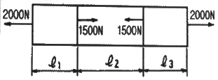 균일 단면봉에 그림과 같이 하중이 작용할 때 ℓ2 부분에 발생하는 내력의 크기와 방향은?