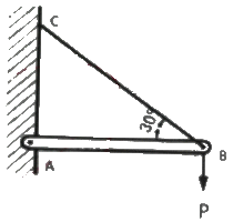 그림과 같이 수평봉 AB가 지름 5mm인 강선 BC로 지지되어 있다. B점에 가할 수 있는 하중의 최대 크기 P는 몇 N 인가? (단, 강선의 허용인장응력은 440MPa이고, 강선과 수평봉이 이루는 각도는 30° 이다.)