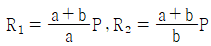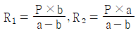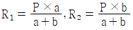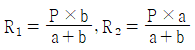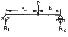 그림과 같은 단순보에 집중하중 P가 작용한다면 반력 R1, R2는 각각 얼마인가?