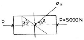 단면적이 20m인 균일 단면봉이 압축 하중 P=5000N을 받고 있다. 이 봉의 하중 축에 45°경사진 단면에서의 압축 응력 σn은 몇 MPa인가?