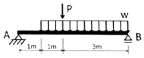 그림과 같은 단순보에서 집중하중(P) 40kN과 균일분포하중(w) 14kN/m이 작용하고 있다. 이 때 A와 B점의 반력 Ra, Rb는 각각 몇 kN인가?