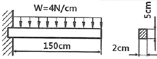 그림과 같이 길이 150cm, 단면 2cm×5cm인 사각형 단면의 외팔보가 W=4N/cm의 균일분포하중을 받고 있을 때, 이 보에 발생하는 최대 전단응력은 몇 N/cm2인가?