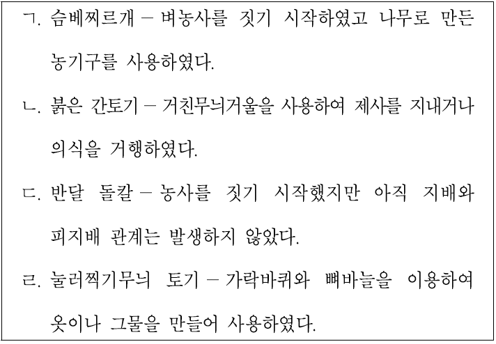 다음은 각 유물과 그것이 사용되던 시기의 사회 모습에 대한 설명이다. 옳은 것만을 모두 고르면?