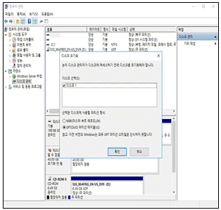 서버 담당자 Jang 사원은 Windows 서버에 디스크 용량을 증설하던 도중 Windows Server 2016에서 다음과 같은 화면을 보게되었다. Jang 사원이 추가한 디스크를 사용하기 위해서 수행해야 할 작업 중 적절하지 않은 것은?