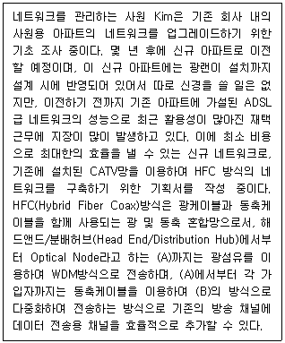 다음은 HFC 기술에 대한 설명이다. (A) 및 (B) 에 들어갈 장치 및 기술의 이름으로 적합한 것은?