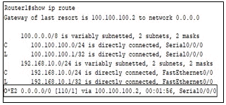 아래 그림과 같이 Router1에서 라우팅 테이블을 확인한 결과, 최하단 라우팅 테이블과 같이 인접한 Router2에서 라우팅 테이블을 공유받았다. 해당 라우팅 정보를 주기 위한 Router2에서의 configure로 알맞은 것은?