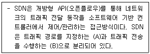 다음은 SDN(Software Defined Network)에 대한 설명이다. (A)와 (B)에 들어갈 용어는 무엇인가?