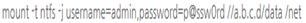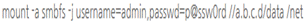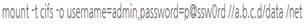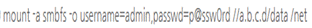 Linux 시스템 관리자인 Park 사원은 IP 주소가 ′a.b.c.d′이고, 사용자명/패스워드가 ′admin/p@ssw0rd′인 시스템의 삼바로 공유된 ′data′ 디렉터리를 ′/net′으로 사용하고자 한다. 해당 작업에 필요한 명령어와 옵션으로 가장 올바른 것은?