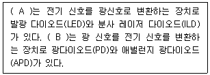 광통신 시스템의 구성 요소에 대한 다음 설명의 (A)와 (B)에 들어갈 알맞은 용어는?