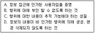 지문은 보안 목표에 대한 설명이다. 각 설명에 해당하는 보안 목표를 올바르게 정렬한 것은?