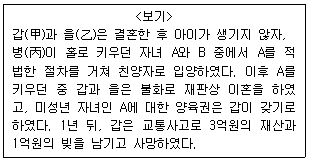 병이 사망한 경우, 병의 법정 상속인은 B이다.