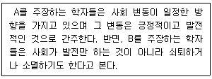 <보기>에서 사회 변동 방향에 대한 관점 A, B에 대한 설명으로 가장 옳은 것은?
