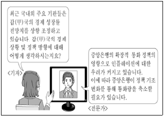 <보기>는 갑(甲)국의 경제 상황에 대한 기자와 전문가의 화상 인터뷰의 일부이다. 이를 바탕으로 전문가가 주장할 것으로 예상되는 통화 정책으로 가장 옳은 것은?