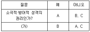 <보기>의 기본권의 유형 A~C에 대한 설명으로 가장 옳은 것은? (단, A~C는 각각 자유권, 사회권, 청구권 중 하나이다.)