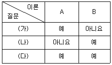 A가 계층론이면 (가)에 '사회 계층 구조를 불연속적으로 보는가?'가 들어갈 수 있다.