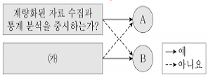 <보기>는 사회ㆍ문화 현상의 연구 방법 A, B를 분류한 것이다. 이에 대한 설명으로 가장 옳은 것은?