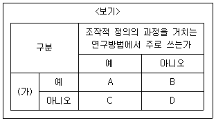 (가)가 ‘언어적 상호 작용에 의한 자료 수집이 필수적인가’ 라면 D는 일상생활에서 나타나는 연구대상의 행동을 관찰하는 자료수집방법이다.
