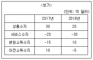 <보기>는 갑(甲)국의 경상수지 자료이다. 이에 대한 분석으로 가장 옳은 것은? (단, 국제 거래는 갑국과 을국 사이에서만 발생하고 제시된 자료 이외의 거래는 없다.)