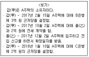 A주택 등기부 등본 을구에는 B은행과 C은행의 근저당권이 설정되어 있다.