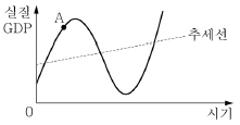<보기>의 그래프는 경기변동 추이를 나타낸 것이다. A시기에 요구되는 경제 안정화 정책으로 가장 옳은 것은?