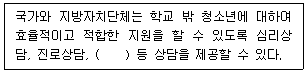학교 밖 청소년 지원에 관한 법률에 명시된 상담지원에 관한 내용이다. ( )에 들어갈 내용으로 옳은 것은?