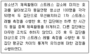 다음 사례에 나타난 실험설계방법의 일반적인 특징에 관한 설명으로 옳은 것은?