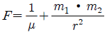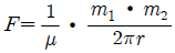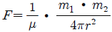 쿨롱의 법칙에서 두 자극사이에 작용하는 힘(F)을 구하는 식으로 옳은 것은?(단, 자극의 세기는 각각 m1, m2, 투자율은 μ, 자극간의 간격은 r 이다.)