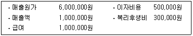 다음 자료를 이용하여 계산한 매출총이익, 영업이익과 당기순이익은 얼마인가?(순서대로 매출총이익, 영업이익, 당기순이익)