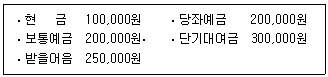 다음 자료에서 재무상태표에 표시될 현금및현금성자산은 얼마인가?