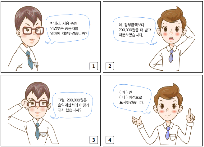 다음 김과장과 박대리의 대화 중 (가)와 (나)에 해당하는 적절한 용어와 계정과목으로 옳은 것은?(순서대로 가, 나)
