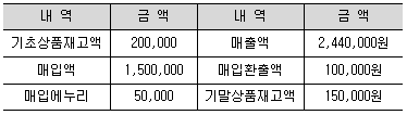(주)한공의 상품에 대한 거래내역을 보고, 매출원가를 계산하면 얼마인가?