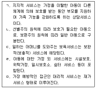 아동복지 대상과 서비스 분류에 대한 설명으로 옳지 않은 것만을 모두 고르면?