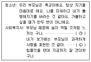 사회복지사가 청소년과의 면담에서 사용한 기법 ㉠, ㉡을 바르게 연결한 것은? (순서대로 ㉠, ㉡)
