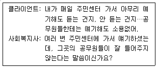 다음 대화에서 사회복지사가 사용한 상담기술은?
