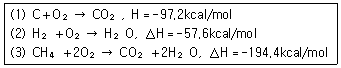 다음 반응식을 이용하여 메탄(CH4)의 생성열을 구하면?