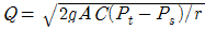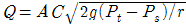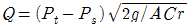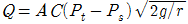 피토관을 사용하여 유량을 구할 때의 식으로 옳은 것은? (단, Q : 유량, A : 관의 단면적, C : 유량계수, Pt : 전압, Ps : 정압, r : 유체의 비중량)