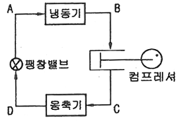 다음 [그림]의 냉동장치와 일치하는 행정 위치를 표시한 TS선도는?