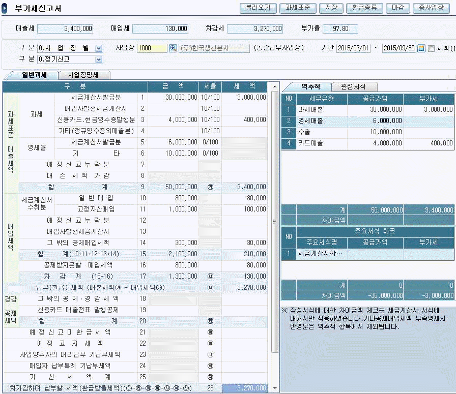 다음 화면의 부가세신고서를 설명한 것으로 가장 옳지 않은 것은 무엇인가?
