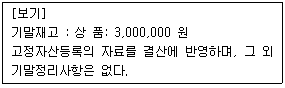 당사는 핵심 ERP 를 이용하여 반기별로 결산을 한다. 다음 [보기]의 기말정리사항을 입력한 후 2015 년 6 월말 결산 시 당기순이익은 얼마인가? * 본 문제는 시뮬레이션 문제로서 [실기메뉴]의 메뉴를 활용하여 문제에 답하시오.