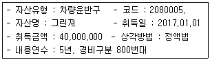 다음 보기의 내용을 참고하여 고정자산 취득내역을 등록하고 감가상각비를 계산하면 얼마인가? (본 문제는 시뮬레이션 문제로서 [실기메뉴]의 메뉴를 활용하여 문제에 답하시오.)